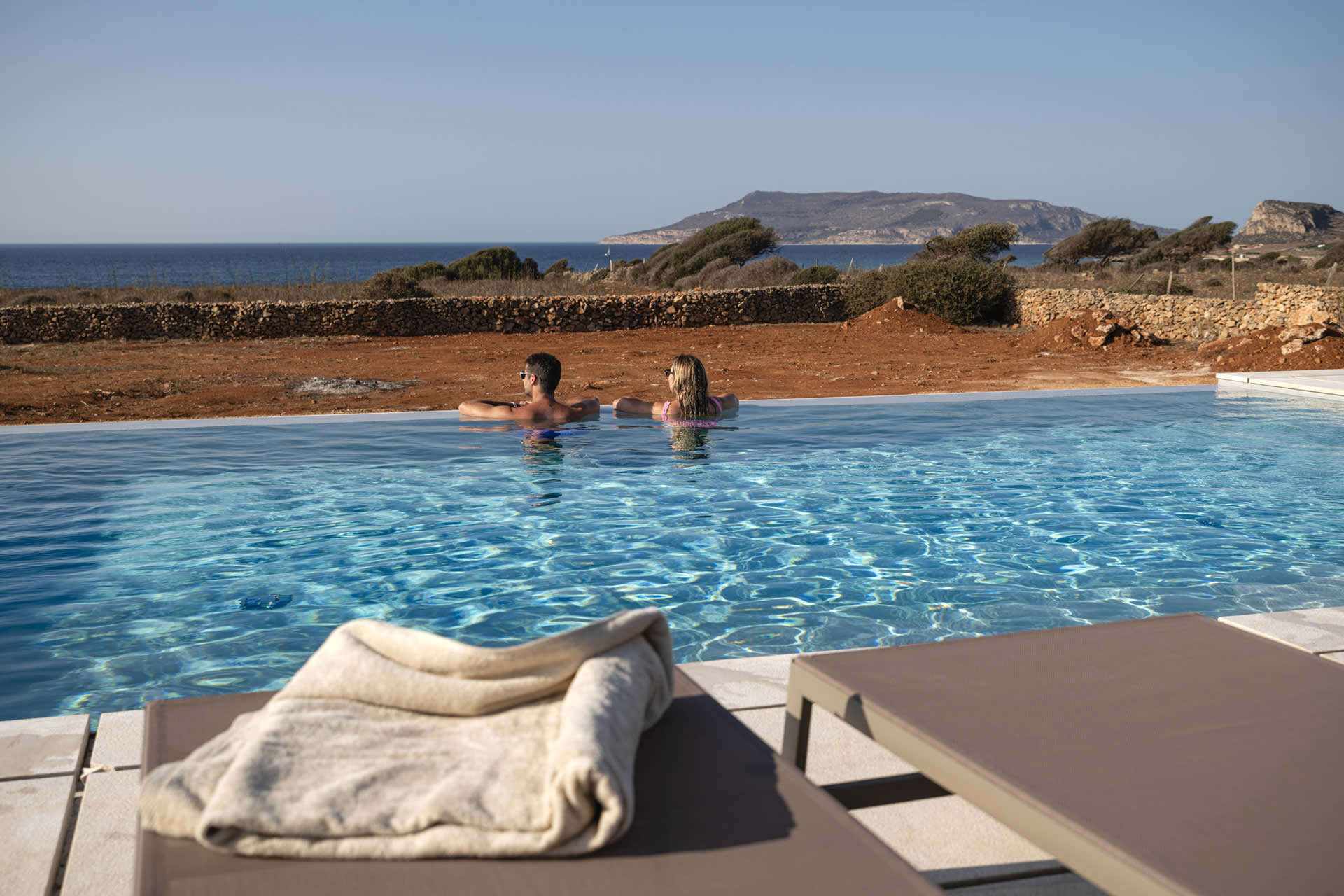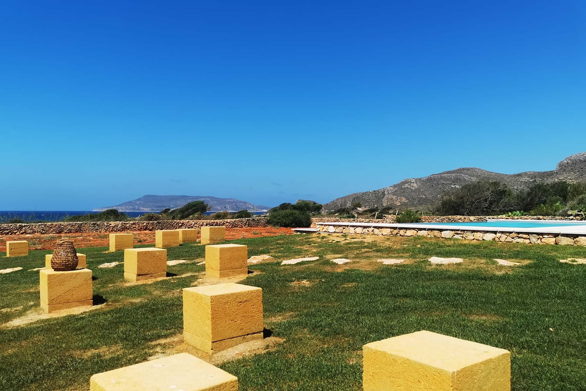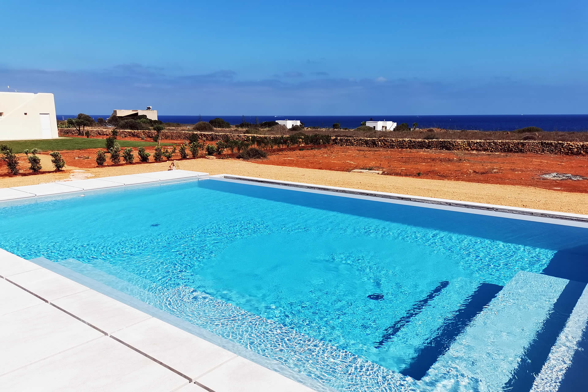 Immergetevi nel lusso e nella tranquillità della nostra ampia piscina a sfioro, perfettamente incastonata nel paesaggio e progettata per offrire una vista panoramica impareggiabile sull'incantevole isola di Levanzo, una delle meraviglie naturali dell'arcipelago delle Egadi