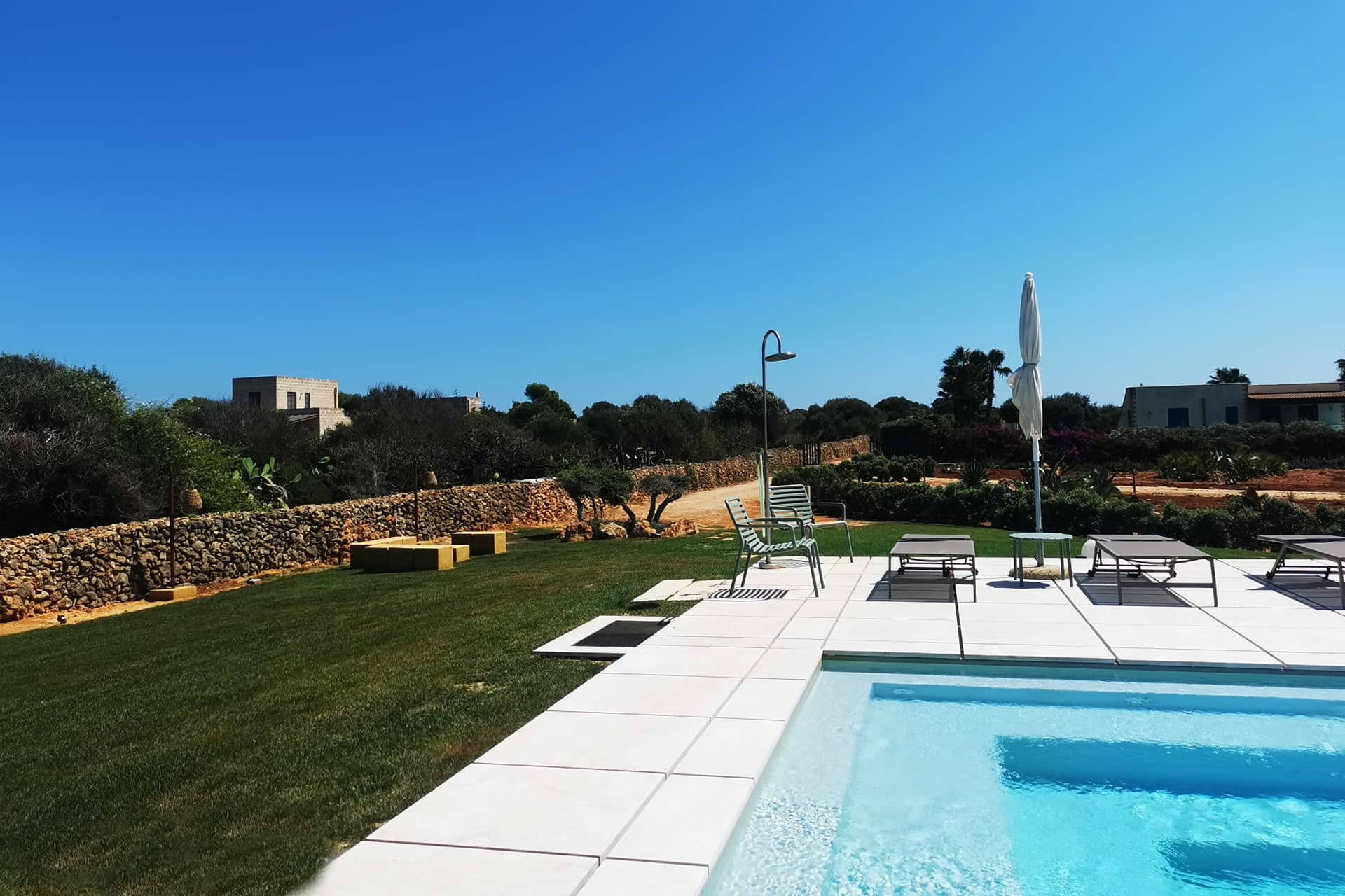 Situata nel cuore del parco che circonda le ville, la piscina è riservata esclusivamente agli ospiti, garantendo un ambiente di privacy e serenità assolute.