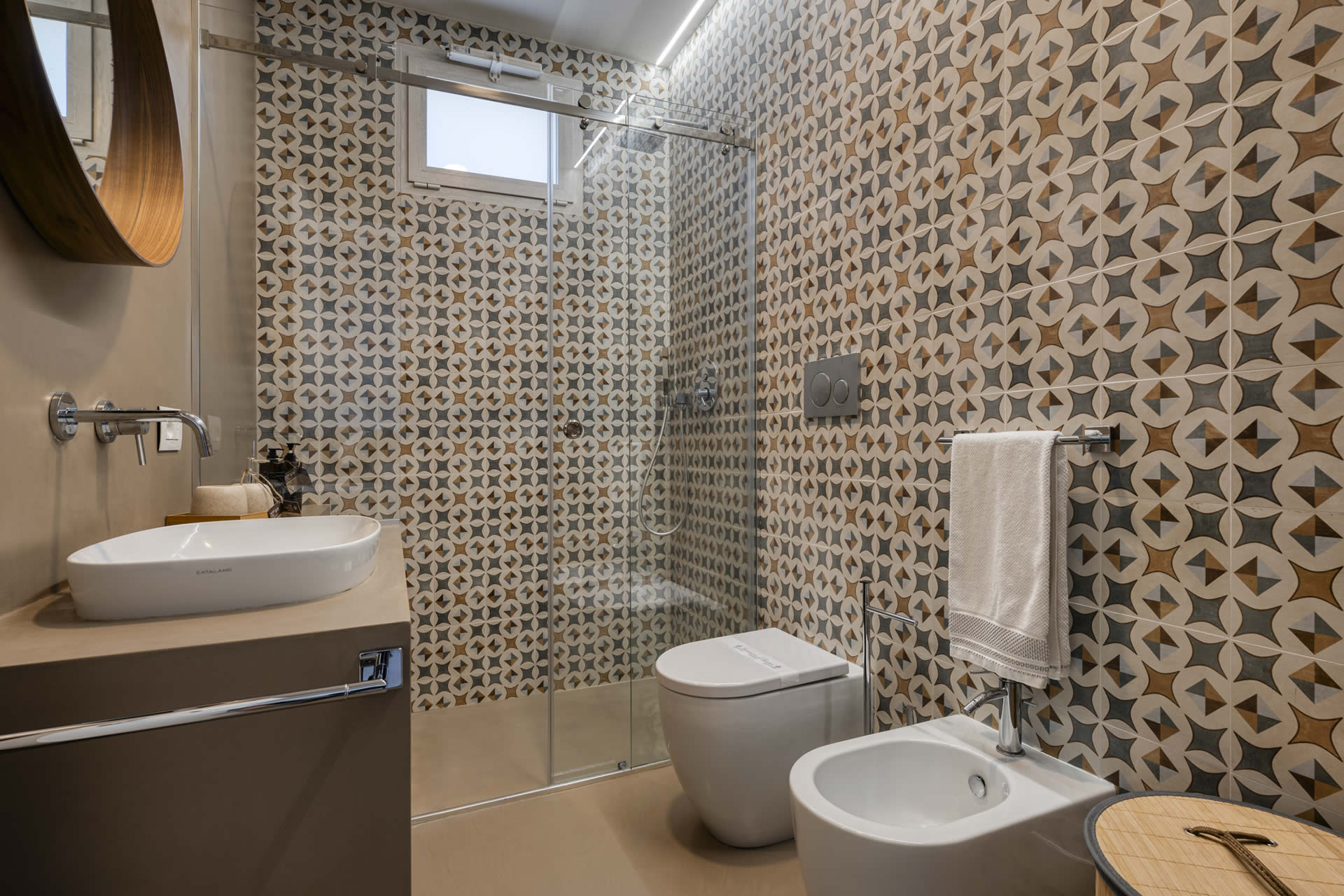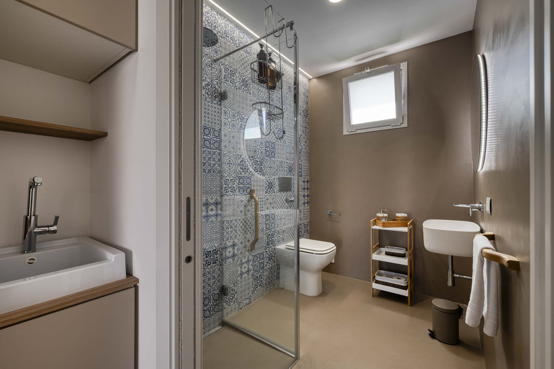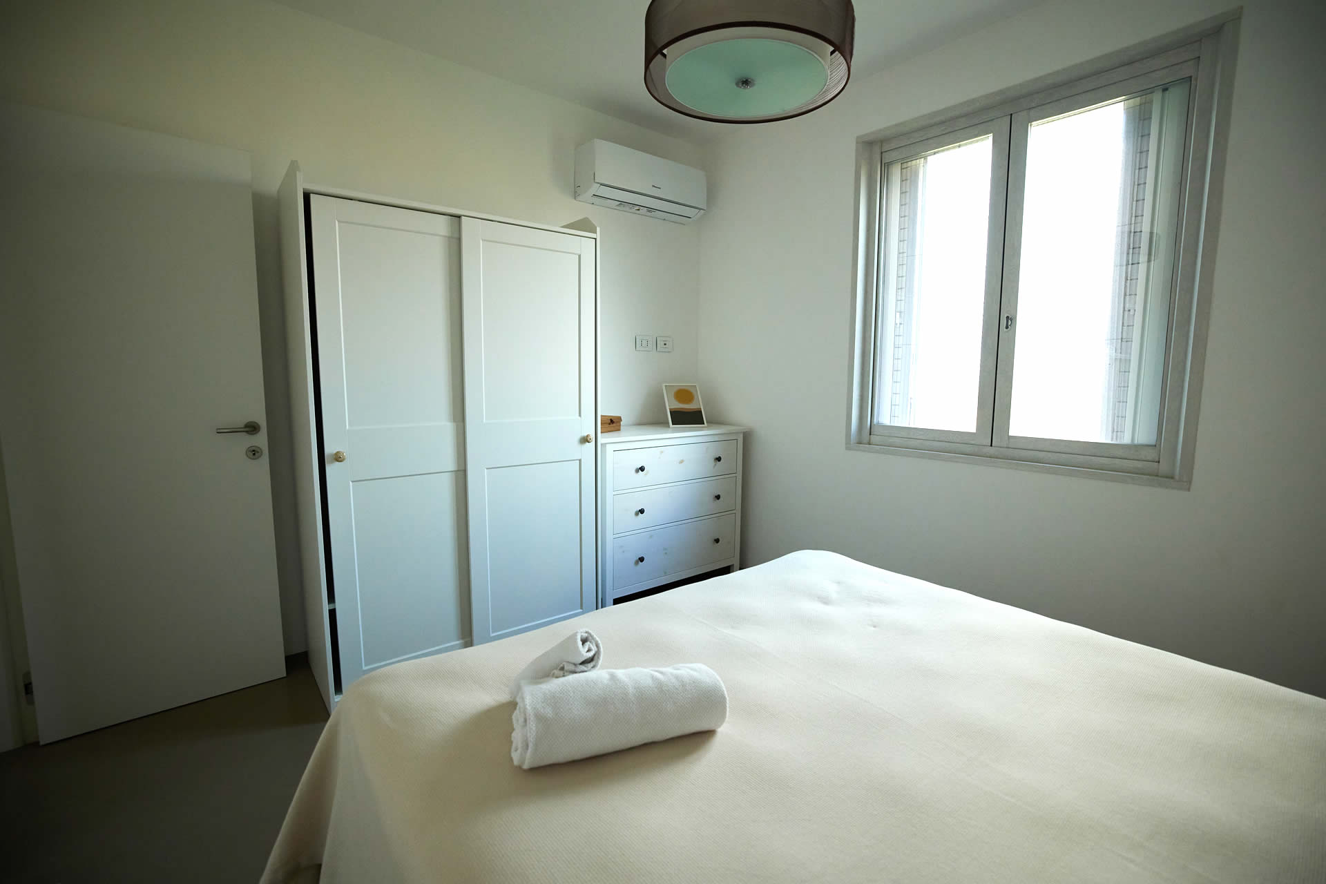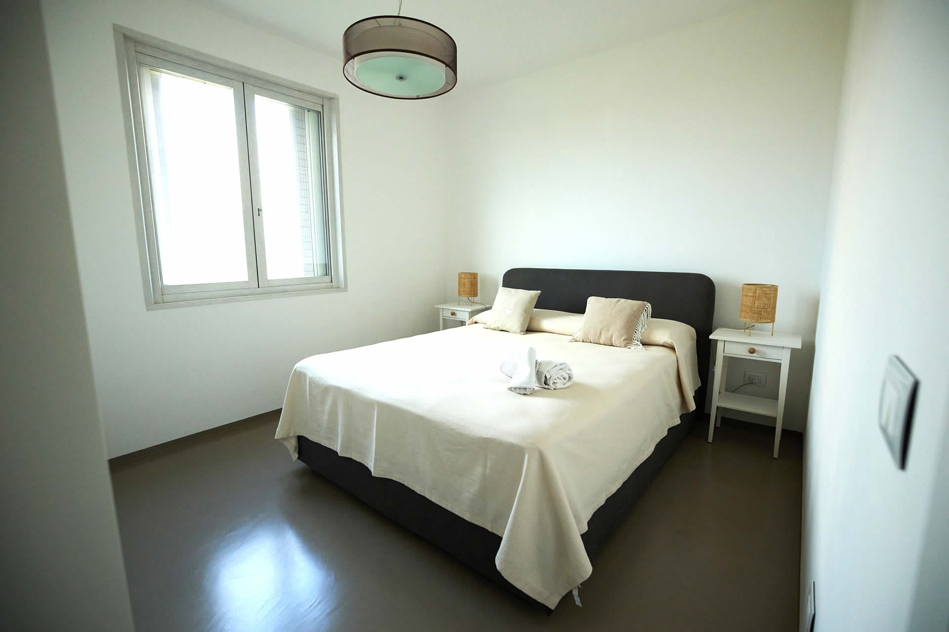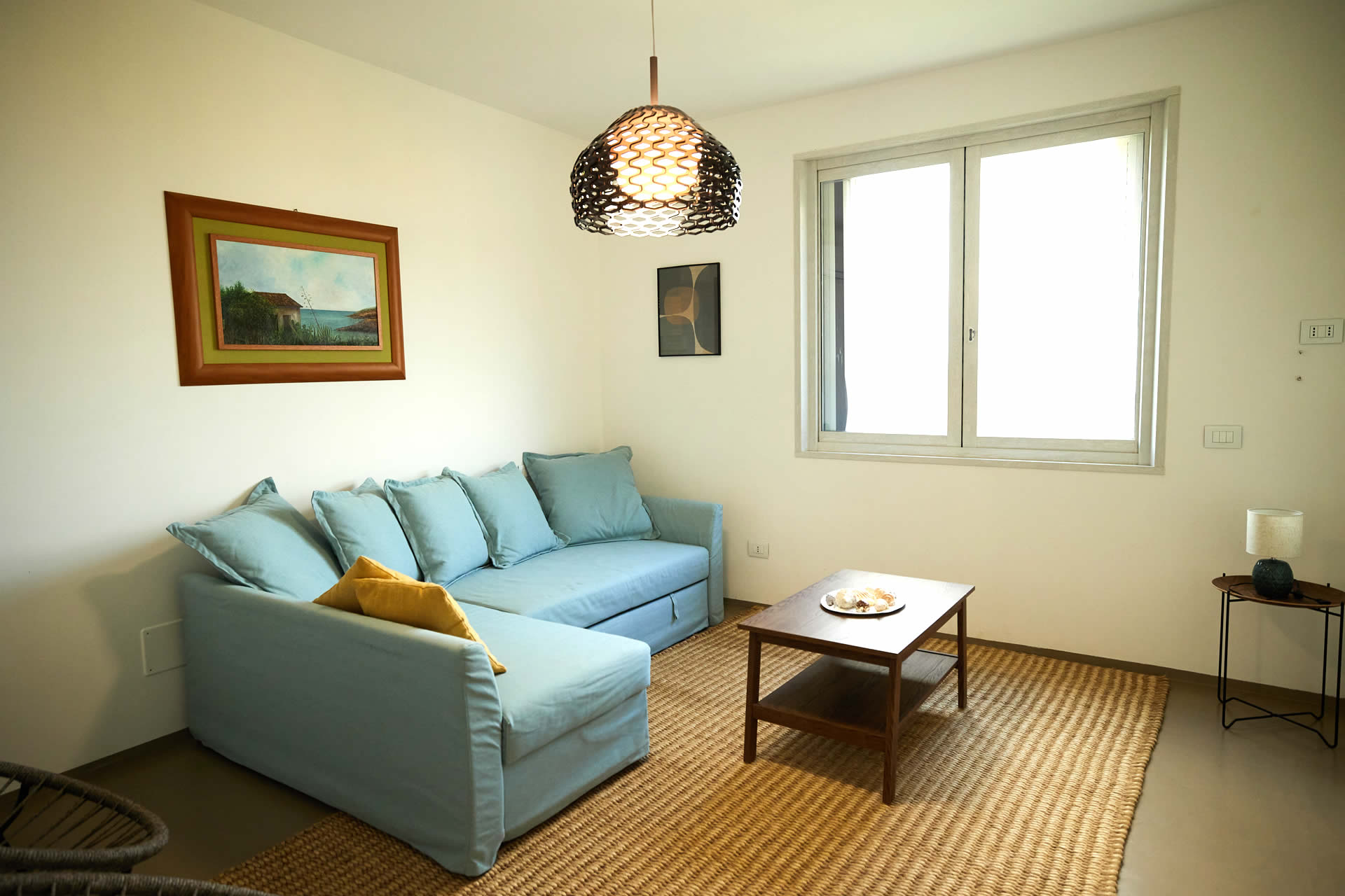 Interni eleganti e spaziosi, con due accoglienti camere matrimoniali fronte mare, due bagni con doccia, un ampio soggiorno con divano letto e porta scorrevole chiudibile, che consente di trasformare l'area in una terza stanza privata, garantendo maggiore privacy, all'occorrenza